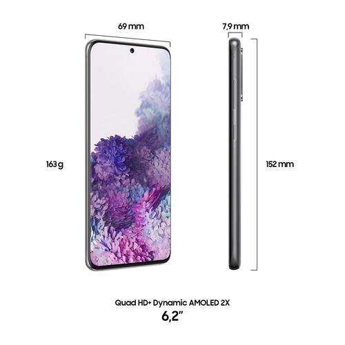 Samsung Galaxy S20 5G, Display 6.2″, 128 GB, 12 GB, 4000 mAh, Hybrid Sim + eSIM, Cosmic Gray. Dimensioni schermo: 15,8 cm (6.2″), Risoluzione del display: 3200 x 1440 Pixel, Tipo di display: Dynamic AMOLED 2X. Frequenza del processore: 2,73 GHz, Famiglia processore: Samsung Exynos, Modello del processore: 990. Capacità della RAM: 12 GB, Capacità memoria interna: 128 GB. Risoluzione fotocamera posteriore (numerico): 12 MP, Tipo di fotocamera posteriore: Tripla fotocamera. Capacità della scheda SIM: Doppia SIM. Sistema operativo incluso: Android 10.0. Capacità della batteria: 4000 mAh. Colore del prodotto: Grigio. Peso: 163 g