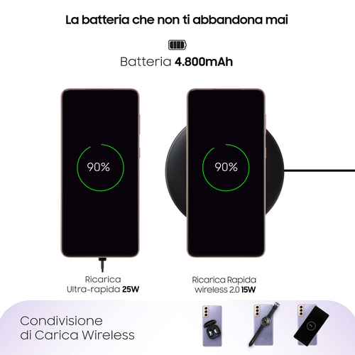 Samsung Galaxy S21+ 5G 256 GB Display 6.7″ Dynamic AMOLED 2X Phantom Violet. Dimensioni schermo: 17 cm (6.7″), Risoluzione del display: 2400 x 1080 Pixel, Tipo di display: Dynamic AMOLED 2X. Frequenza del processore: 2,9 GHz, Famiglia processore: Samsung Exynos, Modello del processore: 2100. Capacità della RAM: 8 GB, Capacità memoria interna: 256 GB. Risoluzione fotocamera posteriore (numerico): 12 MP, Tipo di fotocamera posteriore: Tripla fotocamera. Capacità della scheda SIM: Doppia SIM. Sistema operativo incluso: Android 11. Capacità della batteria: 4800 mAh. Colore del prodotto: Viola. Peso: 202 g