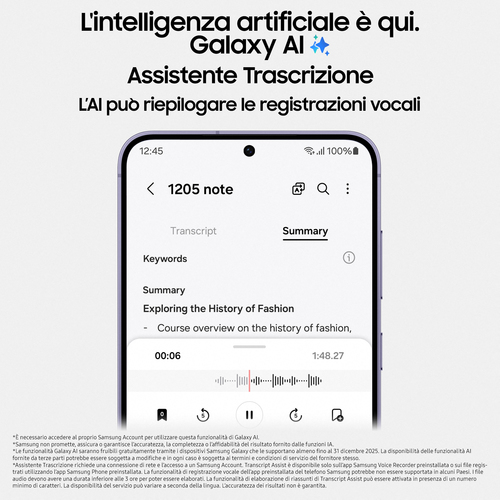 Prova un’esperienza di ricerca online mai vista prima con Cerchia e cerca1, ottieni una traduzione in tempo reale di una chiamata2, riassumi i tuoi appunti e riorganizzali in modo chiaro3 e modifica le tue foto da professionista4- tutto con l’AI. Grazie alle dimensioni più grandi del display e alle cornici ultrasottili5, il display FHD+ da 6,2″”6 di Galaxy S24 ti offre un’esperienza di visione totalmente immersiva. Scatta foto straordinarie con dettagli definiti, a più livelli di zoom e cogli ogni dettaglio grazie alla nuova soluzione AI Zoom.7 ll nuovo Armor Aluminum migliorato mantiene protetto il tuo smartphone8 e con la certificazione IP689 per la resistenza all’acqua e alla polvere, Galaxy S24 è protetto anche durante le tue avventure più selvagge. Non farti fermare durante la giornata grazie alla batteria intelligente ad autonomia elevata.10